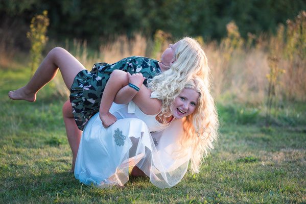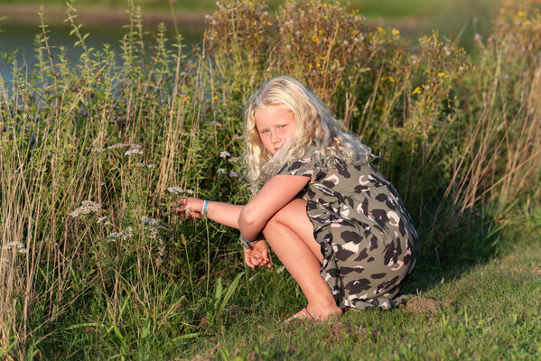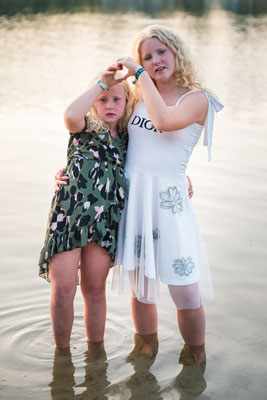 Op twee avonden zijn we tijdens het gouden uurtje, onder toezicht van Natasja, aan de slag gegaan. Wat een lol hadden die twee zeg. Maar ze waren ook gedisciplineerd genoeg om in zo'n korte tijd voldoende foto's te kunnen maken. Op het laatst zijn ze op mijn advies ook nog het het water in gegaan. Stoer hoor, als je bedenkt dat de zon al verdwenen was en het behoorlijk afkoelde. Het resultaat mag er dan ook zijn!